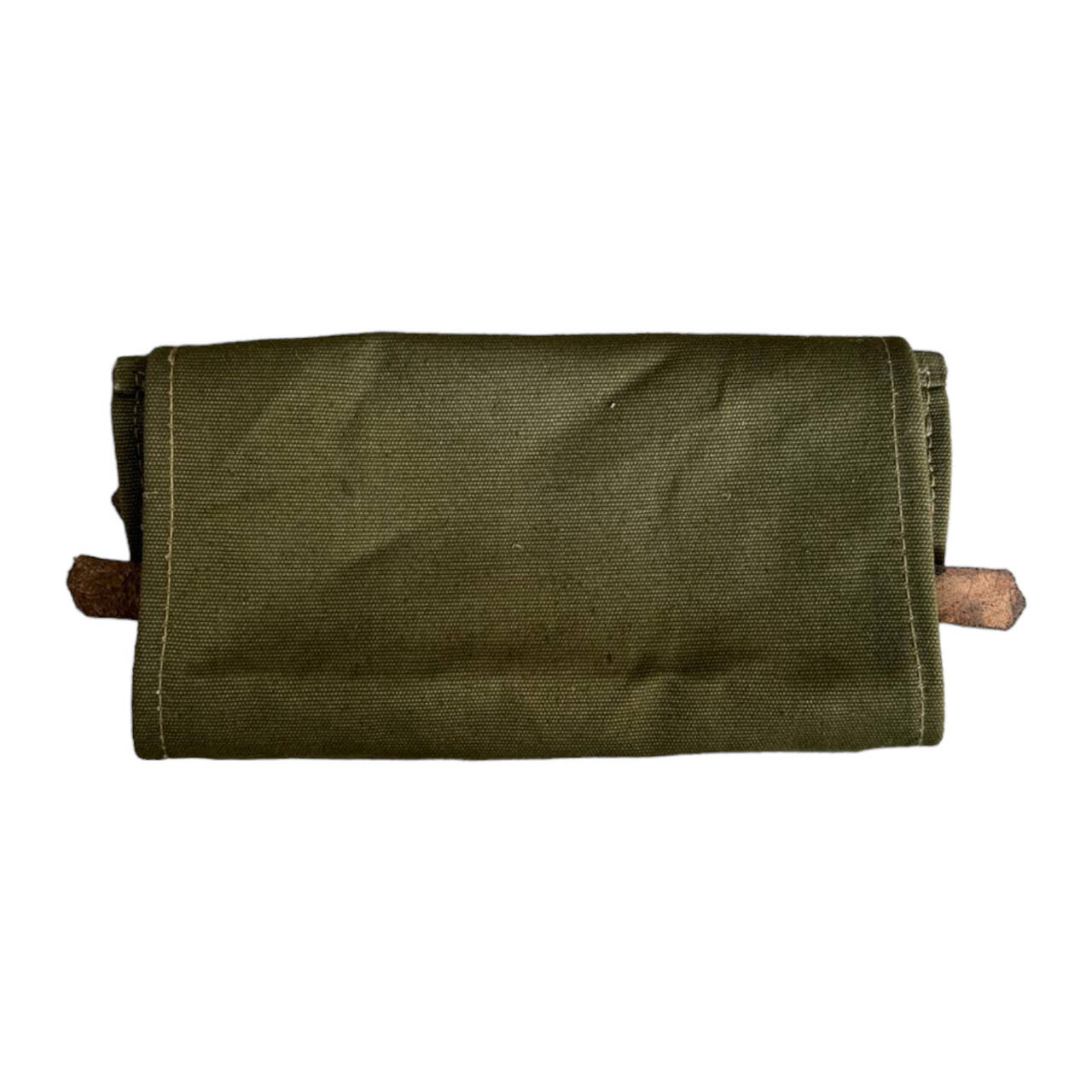 TEXTILE AND LEATHER COVER - OLIVE GREEN - MILITARY SURPLUS ROMANIAN ARMY - IN GOOD CONDITION