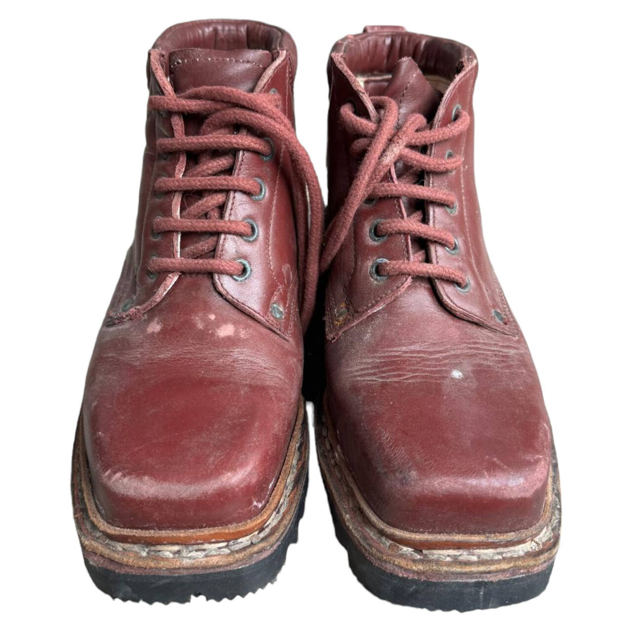 • LEATHER MILITARY BOOTS - MOUNTAIN HUNTERS - MILITARY SURPLUS ROMANIAN ARMY- DARK RED - USED