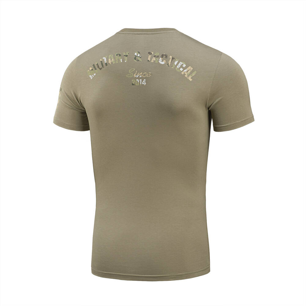 On the back of the t-shirt there is also a stylized camouflage inscription Military&Tactical Since 2014. It was during the Revolution of Dignity that the idea of ​​creating a Ukrainian brand for tailoring and manufacturing tactical clothing for the military and special forces was born. Since then, the brand has been actively developing, and clothing and equipment from M-Tac have repeatedly passed the test in the most flashpoints of current times.