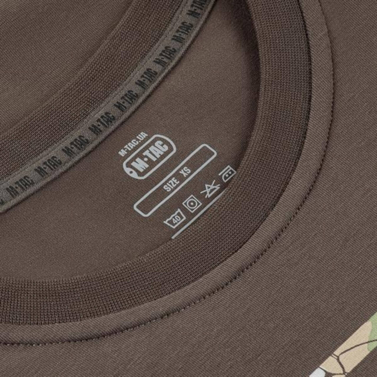 On the back of the t-shirt there is also a stylized camouflage inscription Military&Tactical Since 2014. It was during the Revolution of Dignity that the idea of creating a Ukrainian brand for tailoring and manufacturing tactical clothing for the military and special forces was born. Since then, the brand has been actively developing, and clothing and equipment from M-Tac have repeatedly passed the test in the most flashpoints of current times.