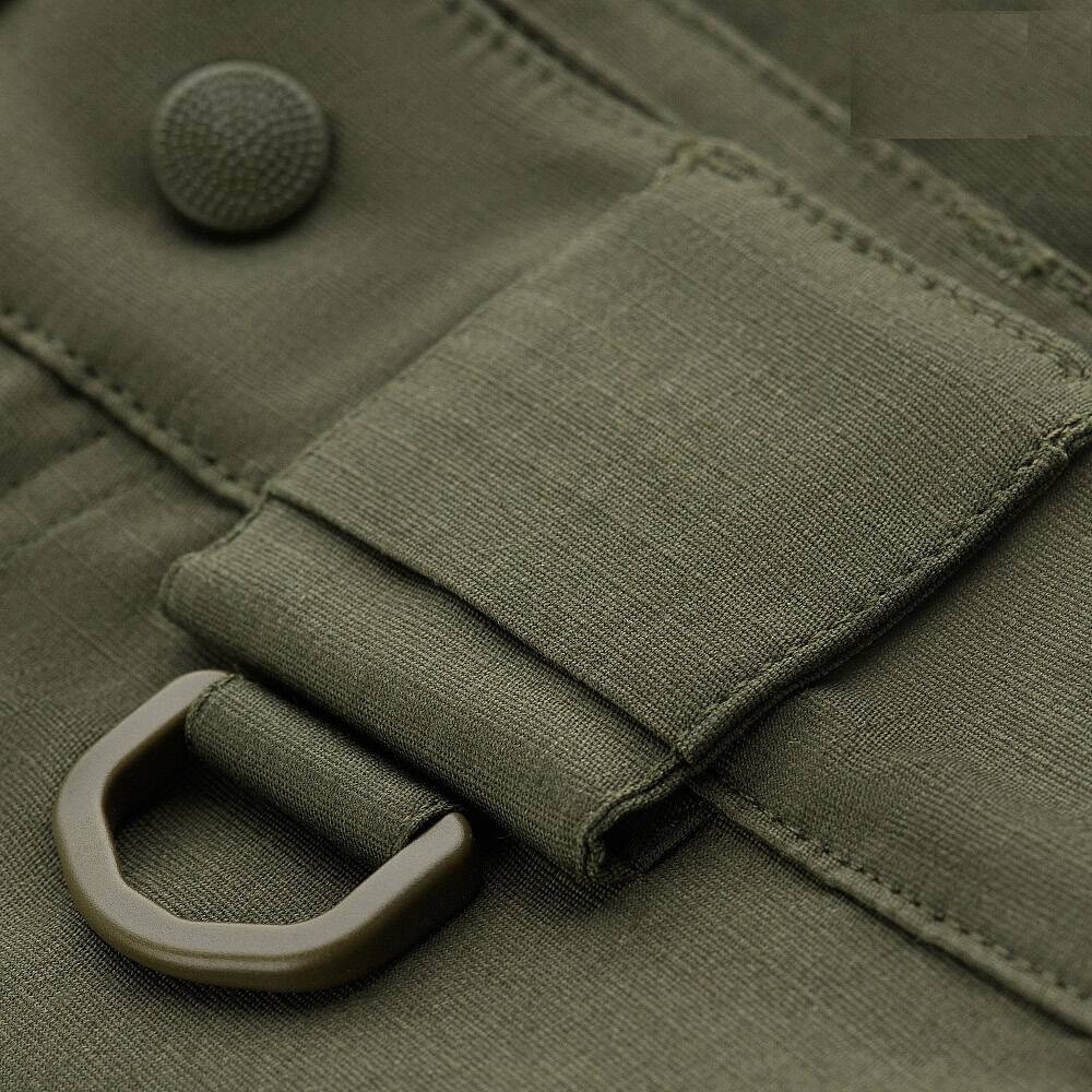 The shorts are made of light one-color rip-stop material with Teflon impregnation, resistant to water and dirt. Composition: 64% cotton, 32% polyester and 4% spandex. The fabric is made of pleasant body polyester and cotton, has good color retention and is very durable. The main task of the designers of shorts was to maintain the comfort of movement, and they coped with this task one hundred percent - shorts create the impression of lightness, do not restrict movement and maintain a stylish and solid appearance. Convenient wide pockets with reinforced inserts were used. Shorts are designed to be worn with a belt up to 5.5 cm wide. Buckles for fastening anything (with carabiners) are sewn on the front of the straps. High-quality accessories from the YKK company.