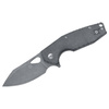 The extravagant Yaru by Jesper Voxnaes also looks good with the help of the closing element. Made of M398, the pocket knife has a rounded blade that can be opened with a flipper or thumb button. The black Micarta handle is harmoniously accented by silver screws. Reversible, with fold-up wire closure and neck loop.