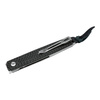 The slender build is based on stainless liners encasing the linerlock. Thanks to the large lanyard hole and clip (tip-up/r), the lightweight knife is easy to carry. The VG-10 blade has a vertical satin finish that matches the carbon handle scales perfectly. With high-quality nylon case for storage.