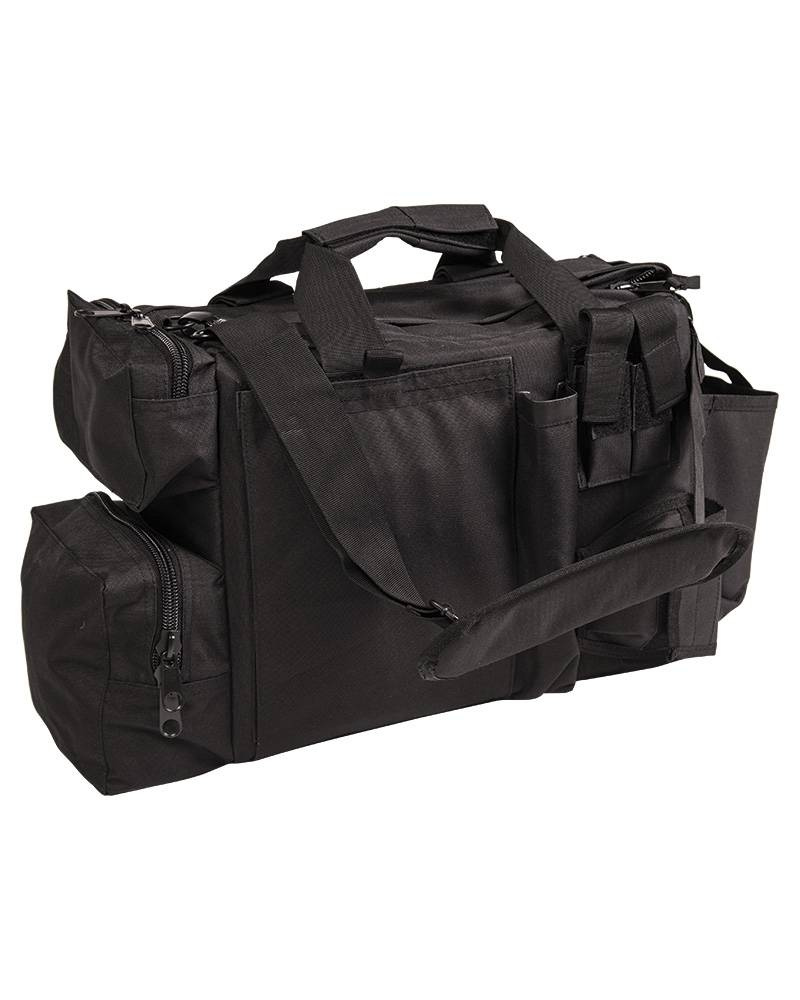 - large number of storage compartments, many details like support for baton and torch, carrying handle, removable shoulder straps, main pocket with adjustable inside partitioning