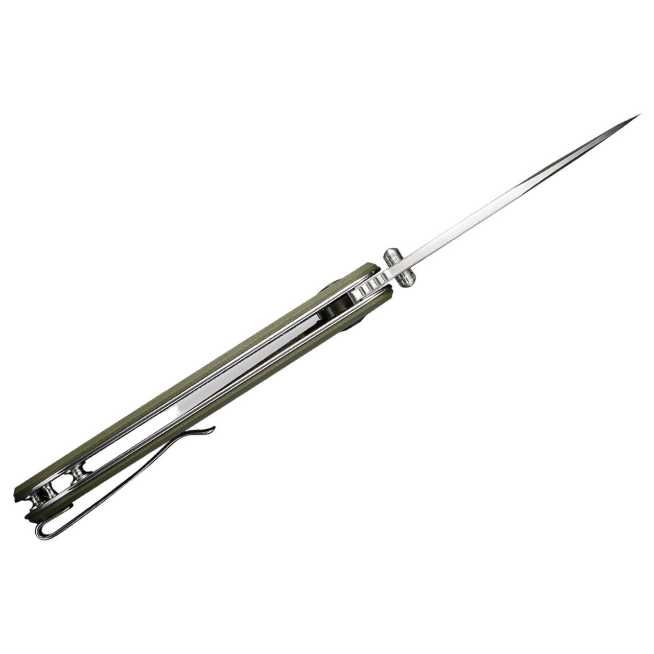 SENCUT Borzam does not promise half-measures. That claim starts with the flap and thumb opening mechanisms and ends with the reversible tip-up clip. Thanks to ball bearings, the 9Cr18MoV drop point blade opens smoothly and easily, while the liner lock ensures a reliable lock. The olive green, textured G10 handle is both a hand flattener and a weight optimizer.