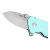 The CRKT Squid Compact by Lucas Burnley is based on the shape of a squid. The curved lines of the sea creature are reflected in the ergonomic stainless steel handle and sky-blue G10 handle scales and are continued in the ball-bearing blade made of edge-holding D2 with a stonewash finish. The high utility value of the assisted folder with frame lock is underscored by the thumb stud, jimpings and lanyard hole, making a weightless plunge into the world of EDC a breathtaking experience. With clip (tip-up/r).