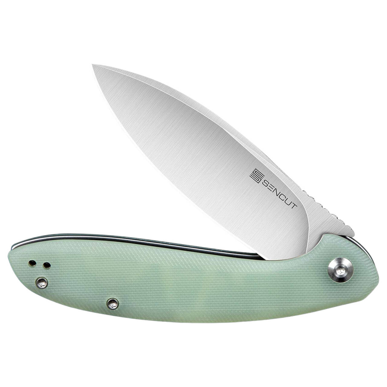 Named after the American city of San Angelo, SENCUT's eponymous knife marks EDC's Shining Star. Equipped with a leaf-shaped blade made from 9Cr18MoV and a jade green G10 scaled handle, the pocket knife offers a powerful mix for everyday cutting tasks. The flipper lock and liner lock for opening and unlocking the blade highlight the intuitive operating concept. With reversible tip-up clamp.