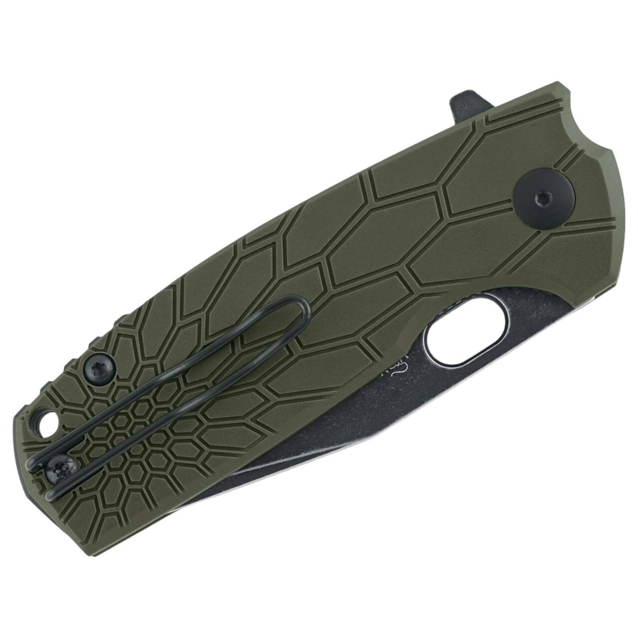 The Fox Core by Jesper Voxnæs is a universally stable model that proves itself in outdoor use as well as in everyday life or hunting. The olive green honeycomb textured FRN handle fits snugly in the hand and accommodates the N690 Tanto blade with a stonewash black finish, which can be opened either through the flipper or thumb hole and receives reliable support from the liner lock. With convertible tip-up clamp.