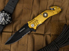 The sturdy Magnum Air Force Rescue is a reliable rescue knife that combines numerous practical functions and can save lives in an emergency. The black-coated reverse tanto blade made of 440A is equipped with a partially serrated edge and is opened with a spring-assisted flipper. A sturdy linerlock locks the blade when open. The olive gold anodised aluminium handle always lies securely in the hand and has a detailed army emblem. Supplied with a glass breaker, a belt cutter and a practical clip (tip-down/r).
