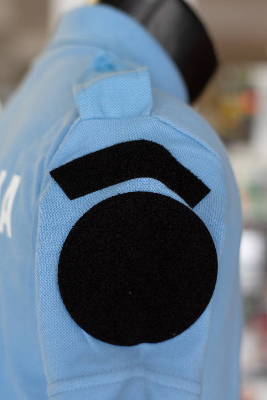 In the back and the front of the shirt is displayed JANDARMERIE, on the left arm are the other official insignias.
