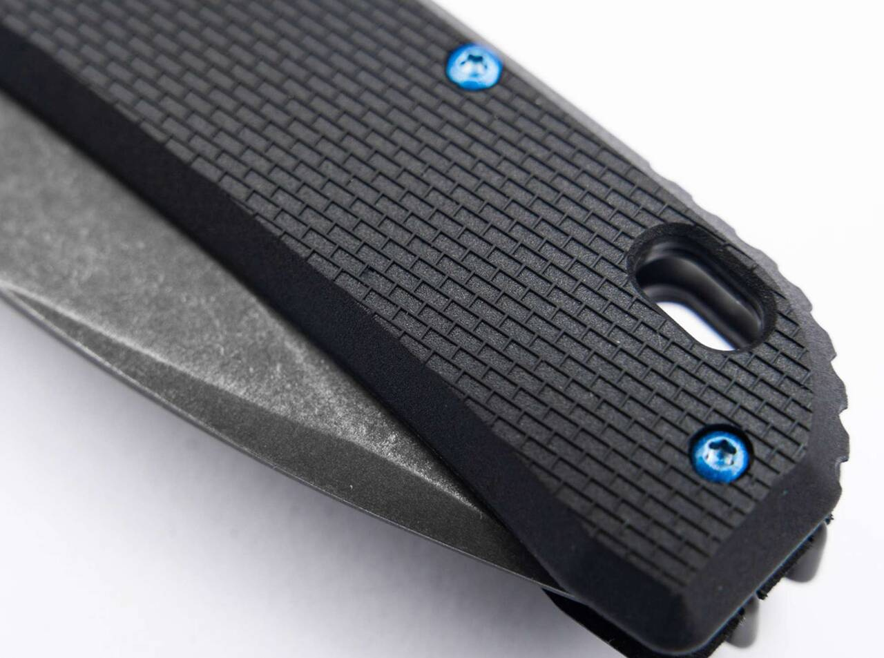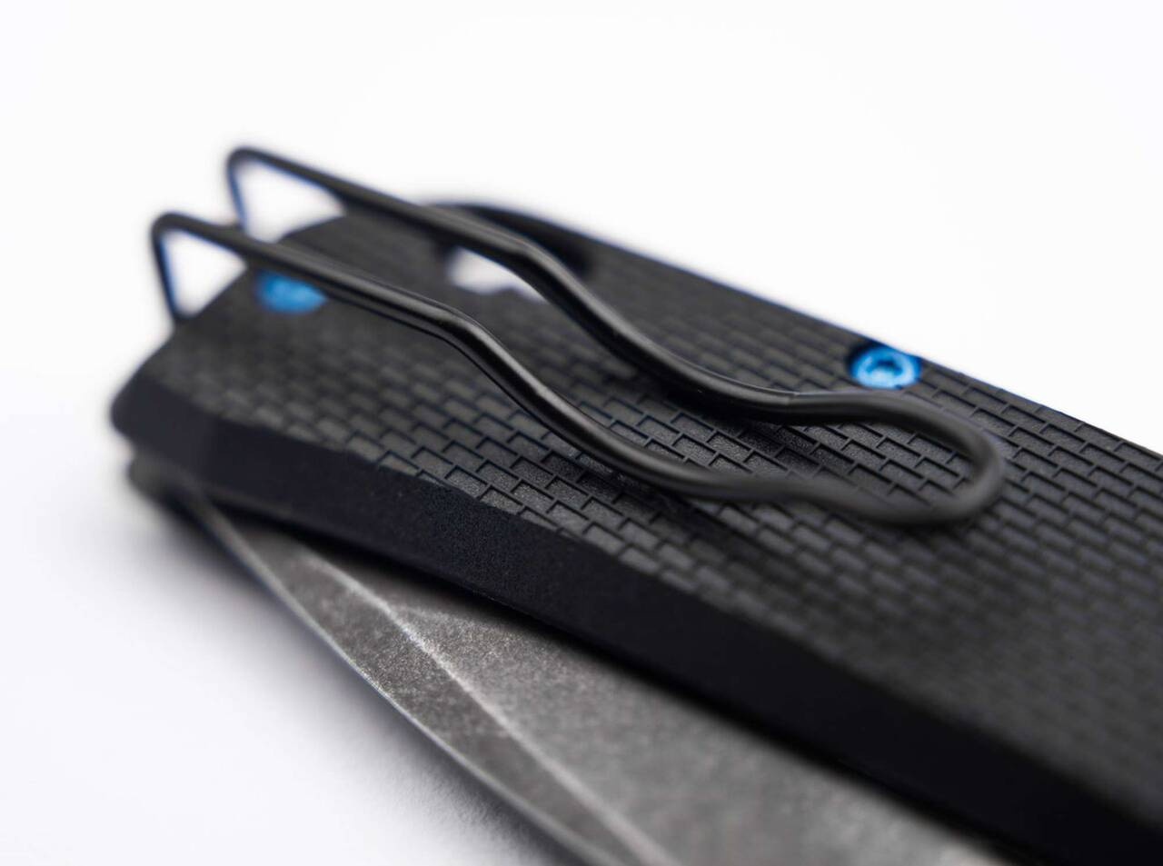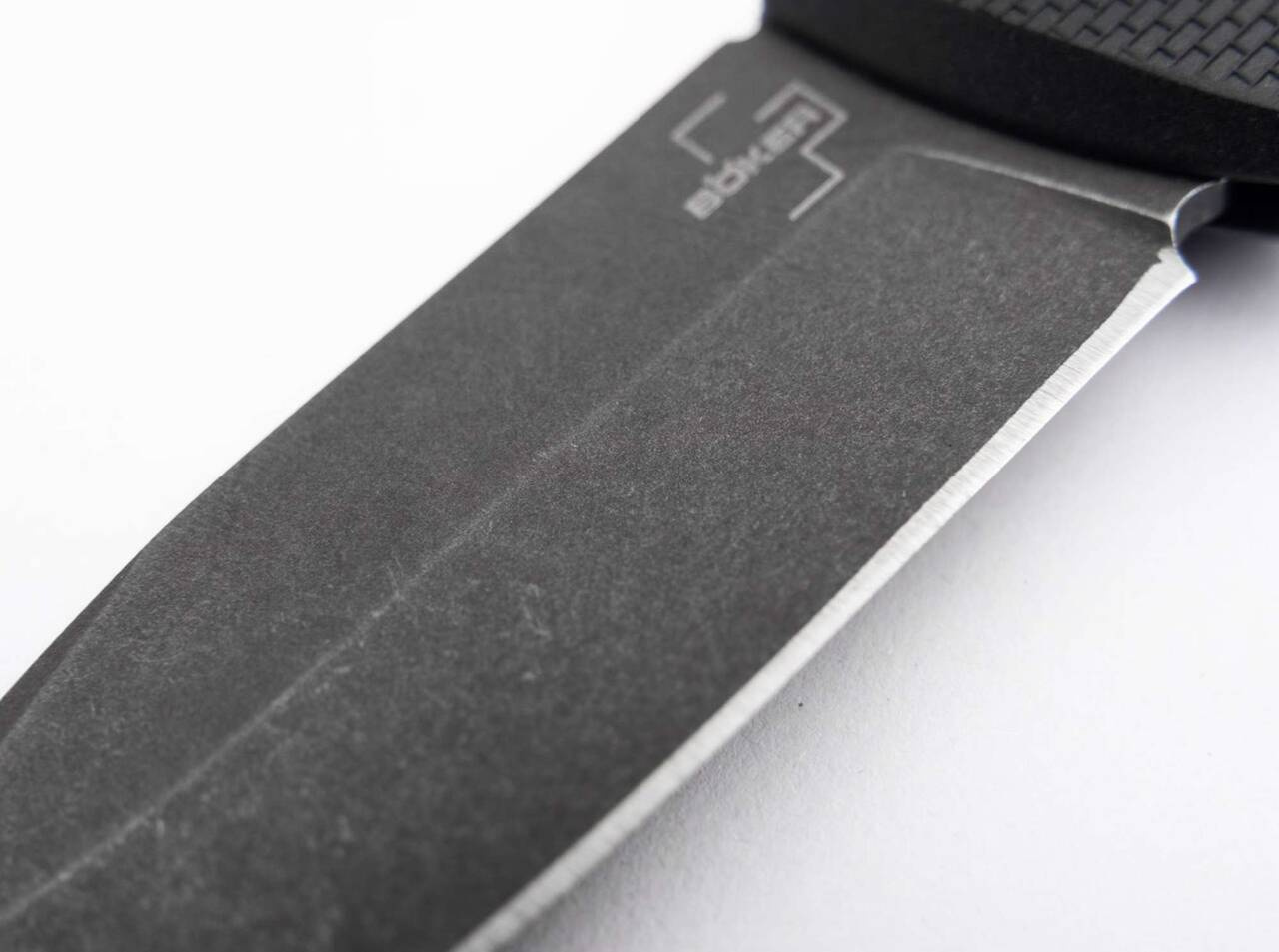 Daily routine is a thing of the past - the Boker Plus FRND Black breaks free of the daily humdrum and invigorates as a varied and slim automatic knife with EDC character. The drop-point blade made of D2 opens by push button and has a smoky black stonewash finish that makes small traces of use almost disappear even after hard use. The robust button lock with an additional slider doubly secures the blade during use and significantly minimises the risk of unruly cutting action escapes. Accidental opening in a trouser pocket is also a thing of the past thanks to the safety catch. The textured Grivory handle scales provide a firm grip even in wet conditions and highlights the lightness of the pocket-knife. Decorative accents are set by the anodised screws and the blue-edged blade axle screw. Supplied with a lanyard hole, a wire clip (tip-up/r) and a high-quality nylon pouch.