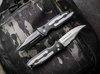 The objective in the development of the Boker Plus Kalashnikov was to integrate design elements of the AK-47 assault rifle. CNC milling was chosen over die-casting as the manufacturing method for the handle in order to achieve the highest degree of precision. It is made of black hardcoat-anodised 6061-T6 aluminium and has non-slip inserts made of grey G10. They feature the same contour as the front handguard of the famous assault rifle. The most striking key recognisable feature is the black-coated blade made of D2, which stylistically corresponds to the bayonet blade of the AK-47. Supplied with a push-button that both opens and unlocks the knife and a clip (tip-up).