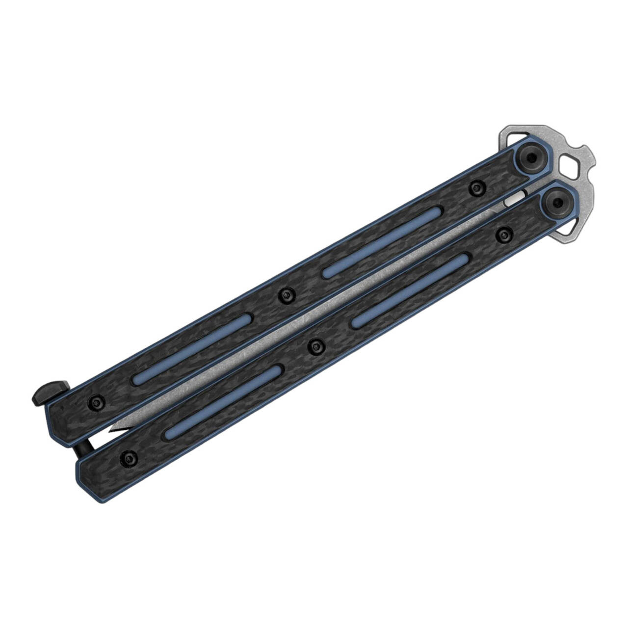 This extra lightweight version of the Kershaw Lucha is made entirely in the USA. The high-quality materials of the Butterfly knife include the blade made of powder metallurgy CPM-20CV steel and a blue titanium handle with handle scales made of carbon. Performance at the highest level is achieved through Kershaw's meticulous design. For example, the blade tapers so that the tip has more weight to swing more evenly. The Lucha features two KVT ball bearing pivot points for extra ease of use. The handle is rounded for effortless rolling in the hand. Even the latch is rounded so it won't catch when flipped. The latch also has a positive stop so it never touches the blade.