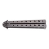 The revised version of the training tool for all enthusiasts and fans of this knife type, which is used to learn and perfect knife skills legally. The stainless steel blade is not hardened and completely blunt, and is connected to both handle segments with torn screws, which can be also be easily retightened after extended training sessions. The classic T-bar is also screw-mounted. The perforated stainless steel handle scales provide secure handling.