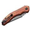 With the CIVIVI Bluetick, Bryan Montalvo has launched an uncompromising EDC knife that does not shy away from any cutting task. The striking drop-point blade made from fine Damascus is ball-bearing mounted and opens with a flipper. Opulent jimpings are attached to the thumb rest, promising maximum control and safety at work. The ergonomic handle made from exquisite Bubinga wood, which houses the discreet liner lock for locking the blade and a reversible tip-up clip, is a real hand flatterer.