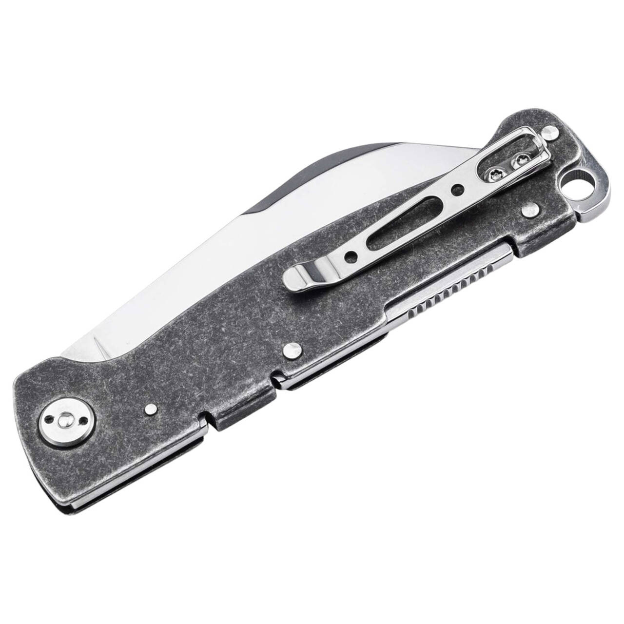 The tidy Boker Plus Atlas is a reliable pocket knife with a stainless-steel handle in a gritty dark stonewash finish. The minimalist construction is exceedingly robust and makes the handy knife the perfect companion in all situations. The satin-finished sheepfoot blade is opened by a nail nick, while the lock is taken over by the sturdy back lock. Supplied with a tip-up clip (r).