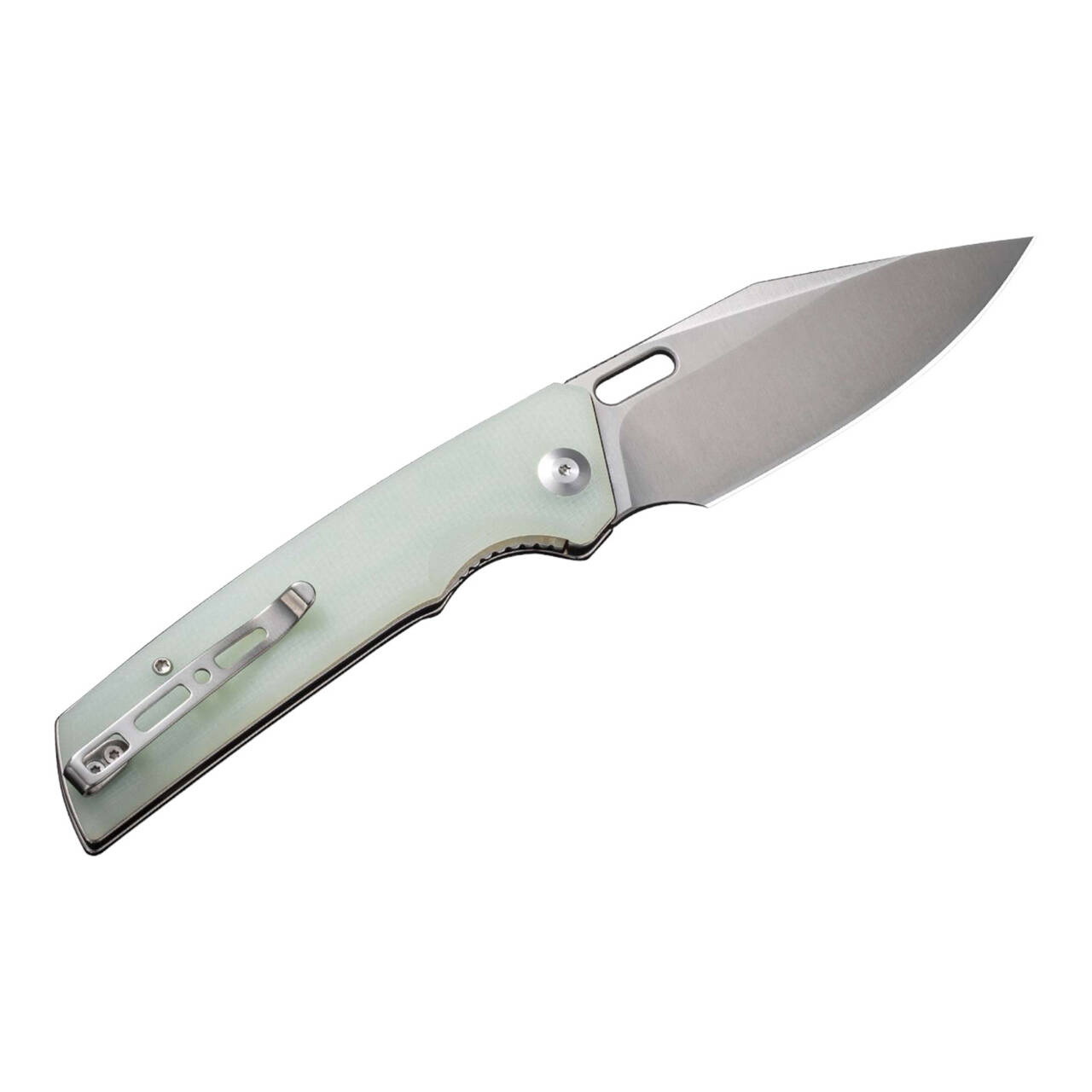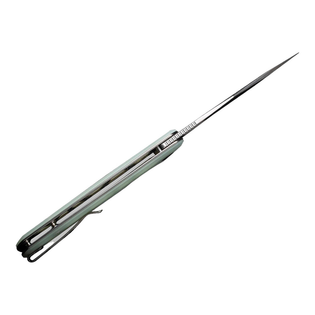 The GliderStrike strikes calmly during everyday cutting tasks. The ball-bearing, satin-finished clip point blade made from 9Cr18MoV makes precise to powerful cuts a breeze. The folder is opened with a thumb opening, while the liner lock takes over the locking function. Textured handle scales made from jade green G10 ensure that the knife always sits securely in the hand. With reversible tip-up clip.