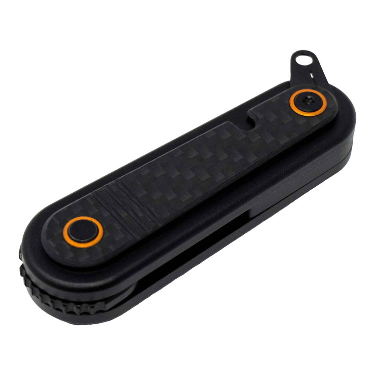 The Revo Spirit does not see itself as an end in itself, but takes its purpose as an exceptional knife to a higher level. With the right spirit, the pocket knife tackles daily cutting tasks after opening the 14C28N blade via the front flipper, while the button lock for unlocking is used for internal retention. For aesthetics, the black aluminum handle is finished with a carbon inlay. With concealed lanyard hole.
