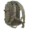 Backpack with 2 large main compartments and 2 front compartments each with zipper, velcro pocket on back for hydration system. Carry handle, padded back and shoulder straps with D-rings, Molle attachment points, Velcro surface on front compartment.