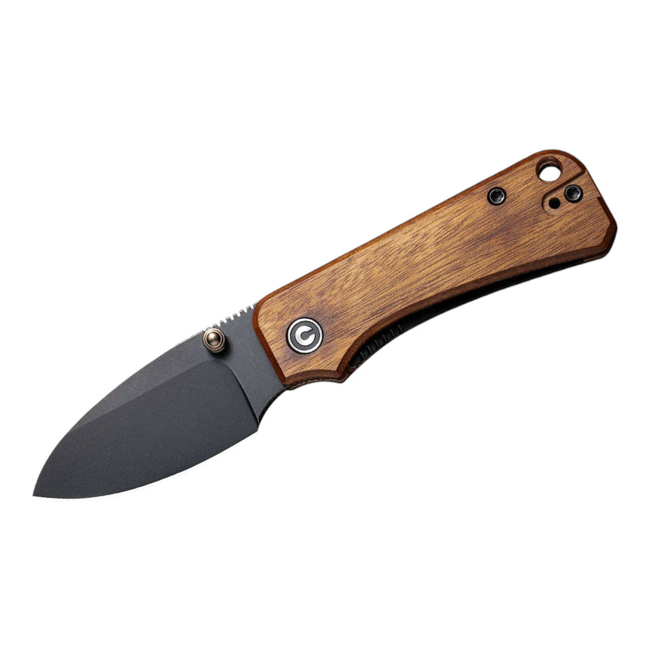 The reliable Baby Banter from CIVIVI is up for any fun. At the same time, the pocket knife designed by Ben Peterson does not go to the basement for a laugh, but straight to the next outdoor adventure. For the daily tasks at hand, its extremely sharp and edge-holding blade made of powder metallurgy CPM-S-35VN has only a weary smile to spare. It is equipped with a noble handle made of cuibourtia wood, a thumb pin and a linerlock. With lanyard loop and convertible clip (tip-up).