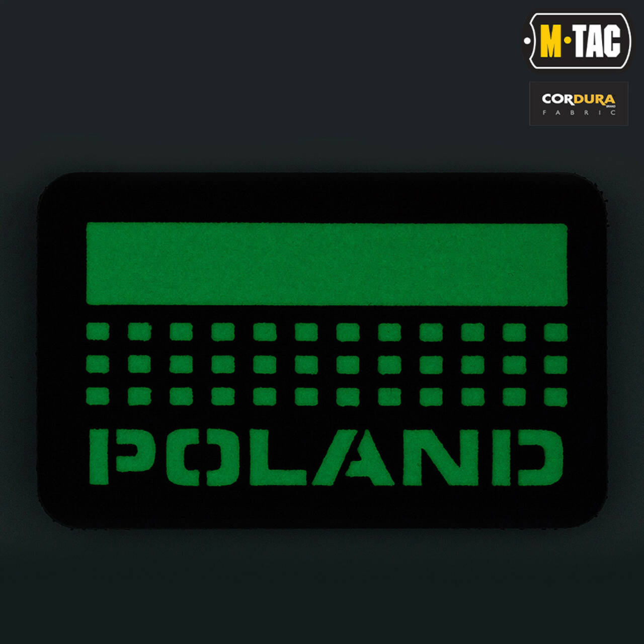 Patch that will serve as a nationality identifier. Made of durable Cordura 500D material, it attaches to clothes, hats, bags, and backpacks by Velcro. The pixelated flag and country name are made by Laser Cut technology. The image is made of a material that accumulates light, glowing in the dark and attracting attention. This patch will clearly emphasize your patriotic views and moral values.
