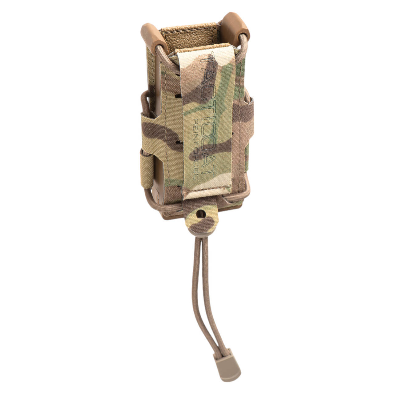 The Clawgear Speedpouch is a hybrid construction that utilizes a plastic retention frame to tightly hold a single pistol magazine without the need for a classic bungee retention pull tab, giving the user a quick magazine draw. Magazine retention is quick and easy to adjust. External MOLLE laser MOLLE laser cut-outs allow for stacking of bags.