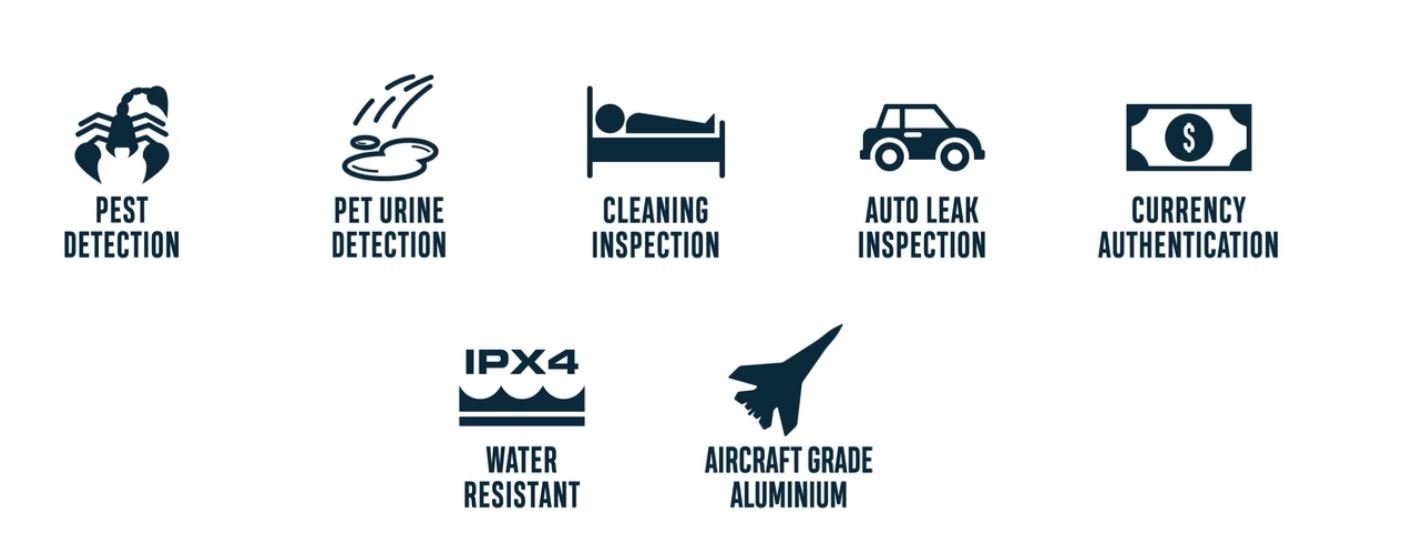 See the invisible with Torchy UV and Black Light. Designed with Dual UVA (Ultraviolet A) technology for better detection, inspection, and authentication in both residential and commercial applications. The broad spectrum wavelengths provide combined illumination and fluorescence, which is ideal for close-up tasks such as pet urine detection, UV dye auto spill inspection, pest detection such as scorpions, cleaning inspections, and coin authentication. Compact and pocket-sized, this lamp is constructed with durable aluminum housing that is impact and water-resistant. Battery powered with three AAA batteries (included).