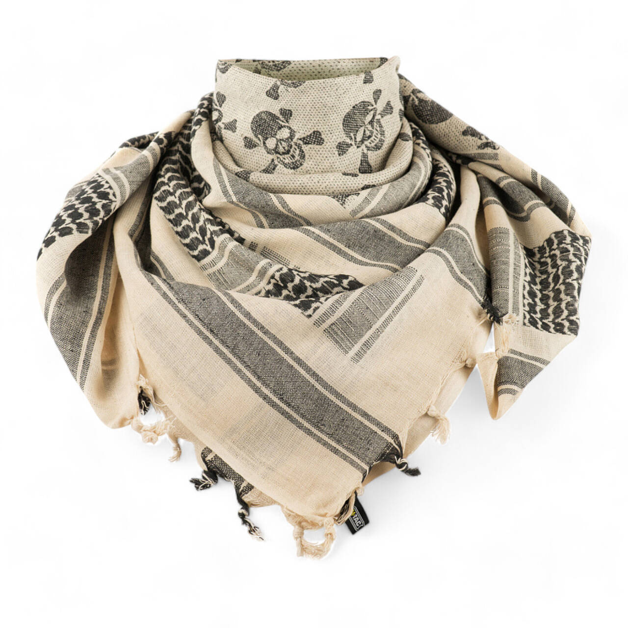 A shemagh scarf (better known in CIS countries as an 'arafatka') is designed to protect the head and neck from the effects of sand, sun, and wind in cold weather. Many armies around the world use this scarf.