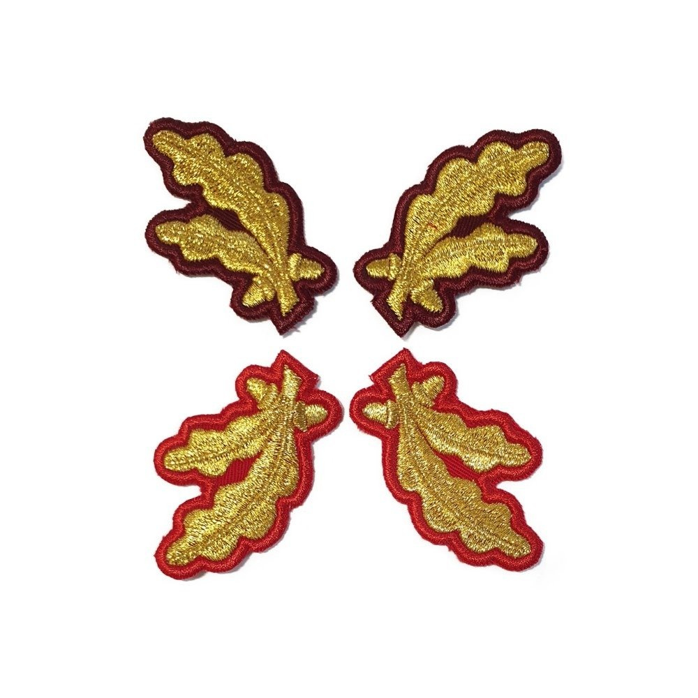 Brodate cu fir metalic auriu pe material de culoarea fiecarei arme.