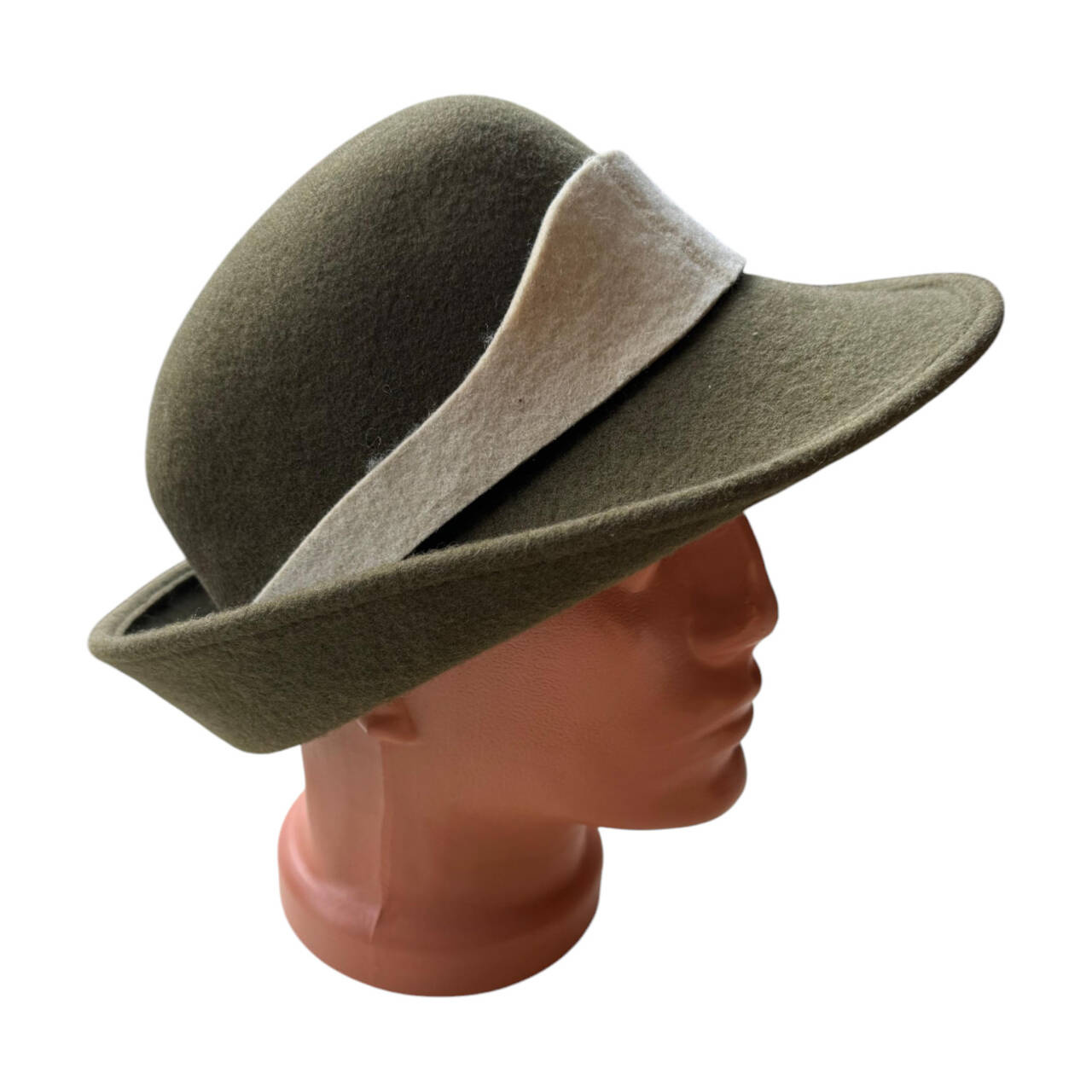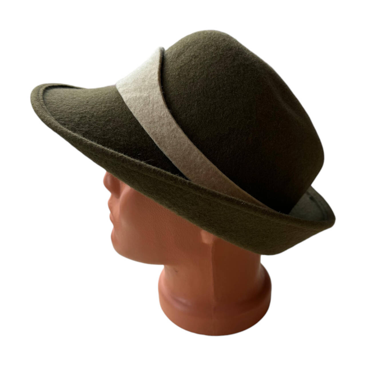 WOOLEN HAT - OD GREEN WITH WHITE BAND - ROMANIAN ARMY MILITARY SURPLUS - LIKE NEW