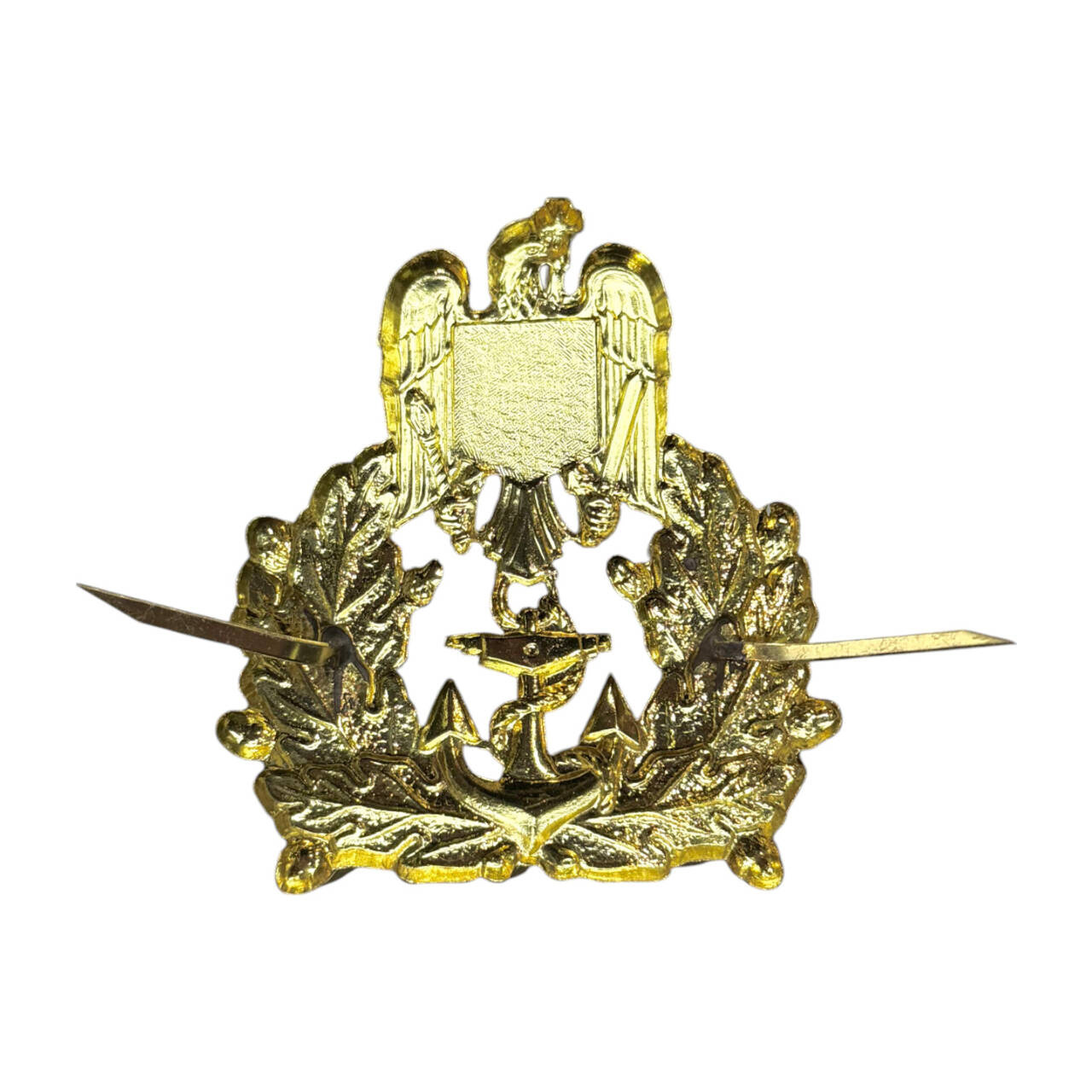 CAP BADGE - MARINE OFFICER - 1598 - ROMANIAN ARMY MILITARY SURPLUS - GOLD - IN GOOD CONDITION