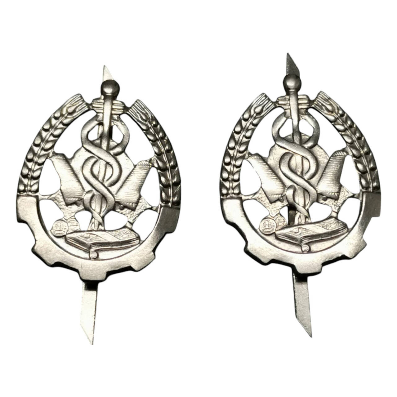 PAIR OF RANK INSIGNIA - QUARTERMASTER/ LOGISTICS 1701 - ROMANIAN ARMY MILITARY SURPLUS - SILVER - IN GOOD CONDITION
