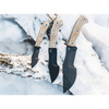 The Boker Plus Mini Tracker, designed by Dave Wenger, has quickly become a favorite in the camping and bushcraft scene, as the rugged outdoor knife with its massive 1095 carbon steel 1095 blade and corrosion-resistant powder coating is still convincing across the board. The fully matured Boker Plus Tracker is now breaking out of its rut. Same materials, same features, but incomparable performance! The top-weight blade of the solid survival knife is equipped with two different honing surfaces and is ideal for slicing, chopping, cutting, scraping, digging and prying. The optimal balance of blade thickness and blade length, as well as the ergonomic shape of the finely textured Micarta textured handle scales allow for fatigue-free work. This updated version is equipped with a full tang blade, supported by sturdy screws for maximum stability. Comes with a belt adapter and custom Kydex sheath.