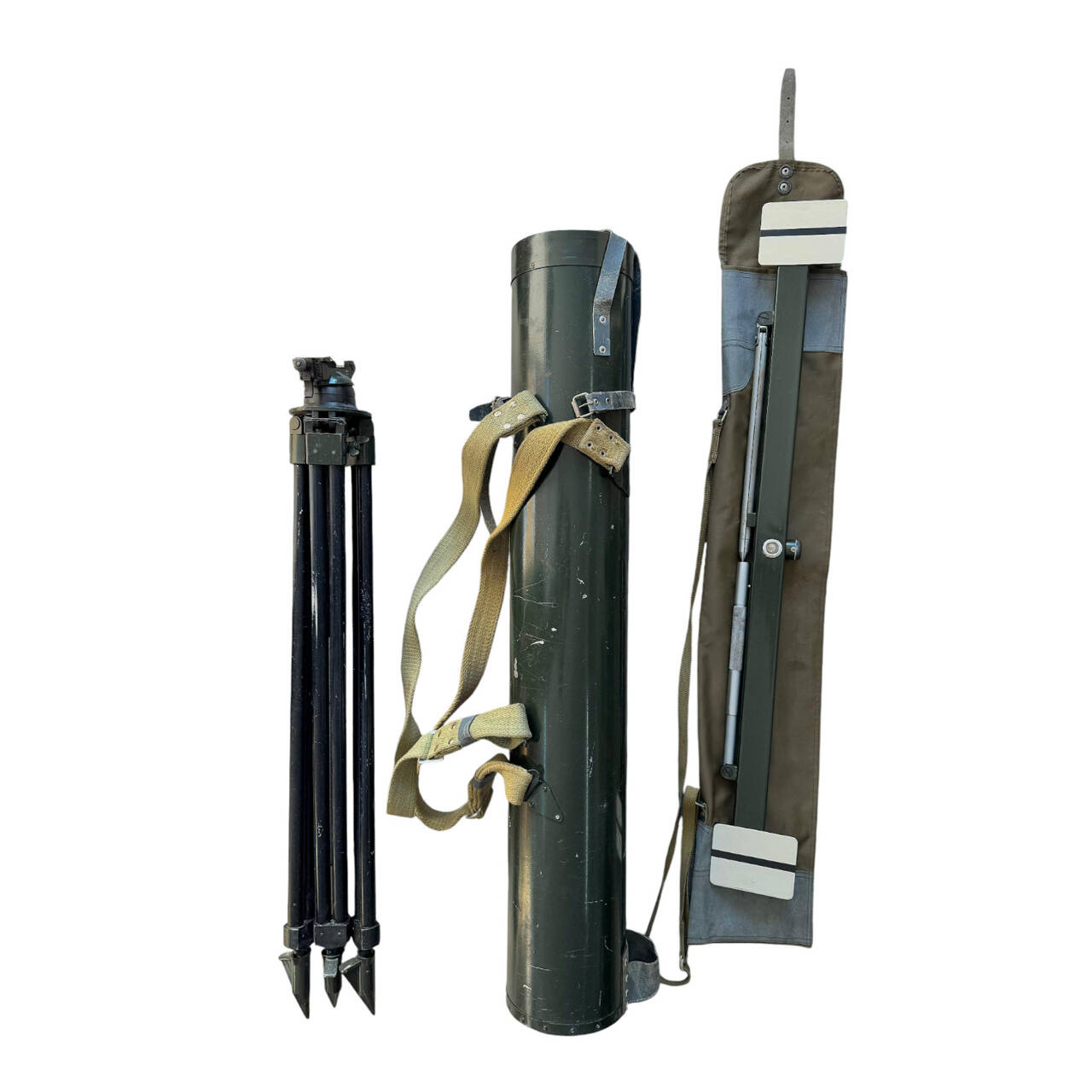The instrument is supplied complete with original metal carrying case, tripod, a measuring rod, measuring rod bag and other accessories. The rangefinder still carries the original data plate, which gives the technical specifications of the instrument and other relevant information.