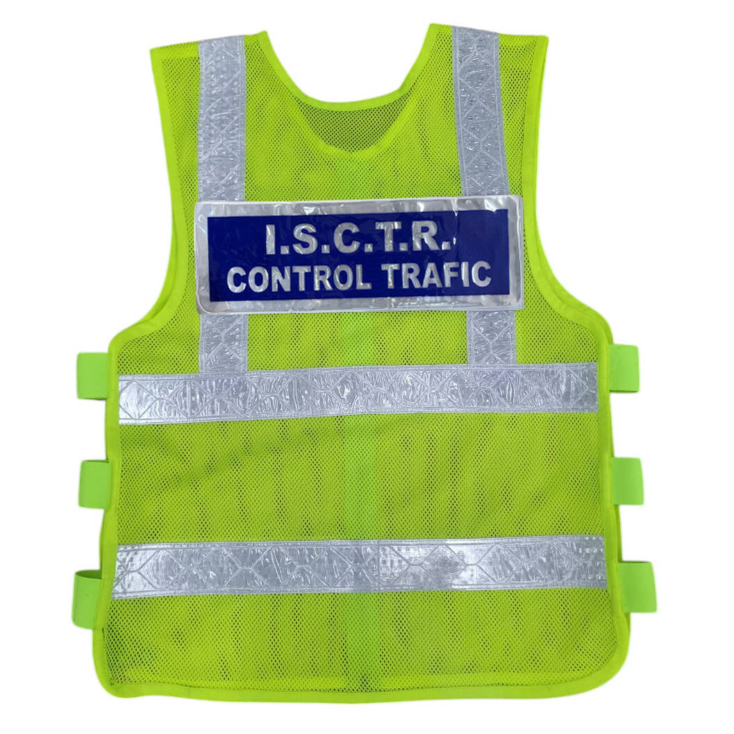 • Provided with microprismatic retroreflective stripes and "ISCTR - CONTROL TRAFIC" inscribed plate, covered with PVC backed film.