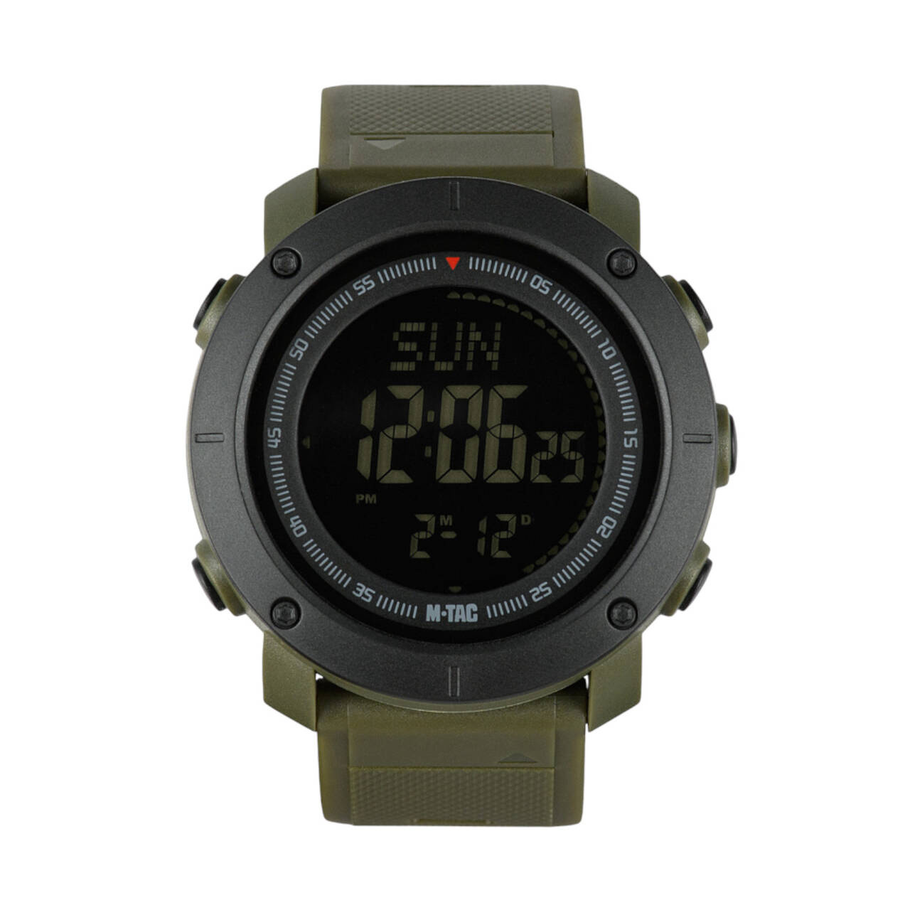 M-Tac has released a new tactical compass watch, the 2095, that will be a valuable addition to your gear. This model offers many features, including a compass, LED backlight, stopwatch, and alarm clock. You can find more information about its functions in the "Instructions for Use" that comes with the watch. The watch case is made of ABS plastic, a durable and impact-resistant polymer known for its ability to withstand physical damage, moisture, and high temperatures. The back cover of the watch is made of steel and has two important markings: "WATER RESISTANT 5ATM" and "BATTERY CODE CR2032".