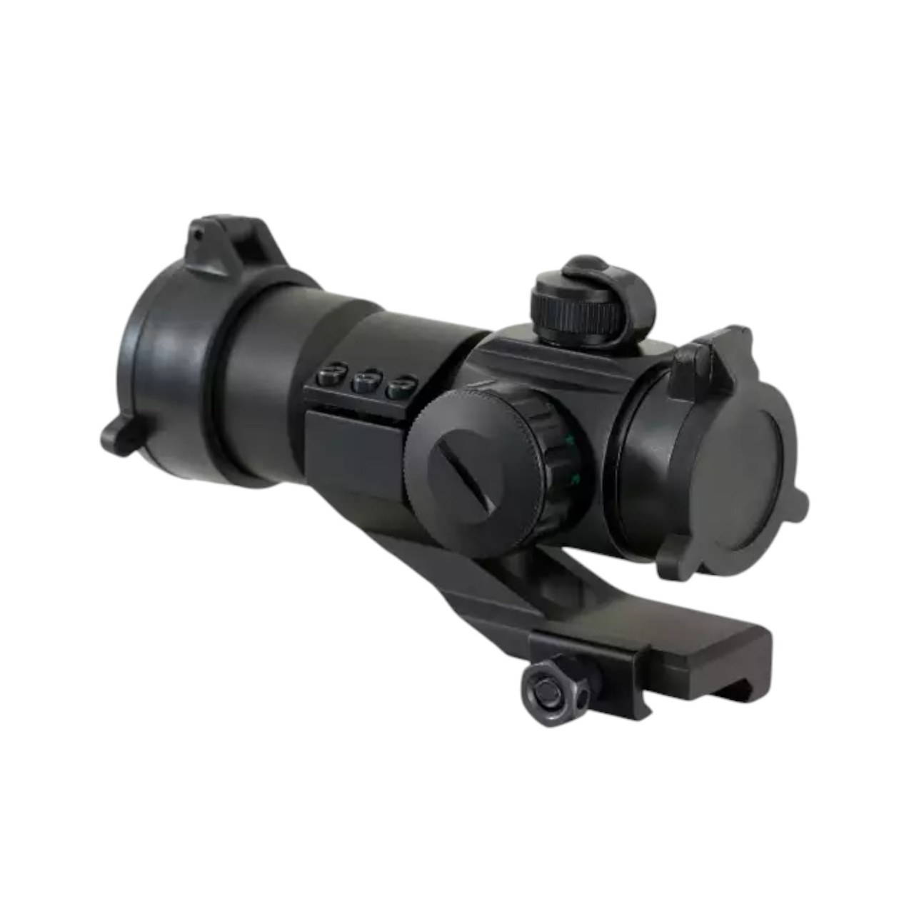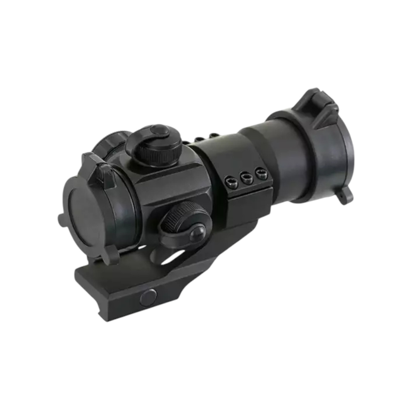 A replica of the Standard Sight, used by the US Army and most special forces worldwide. Made of aluminum, and features dots in two colors (green, and red) with adjustable brightness, and flip-up lens caps in a set.