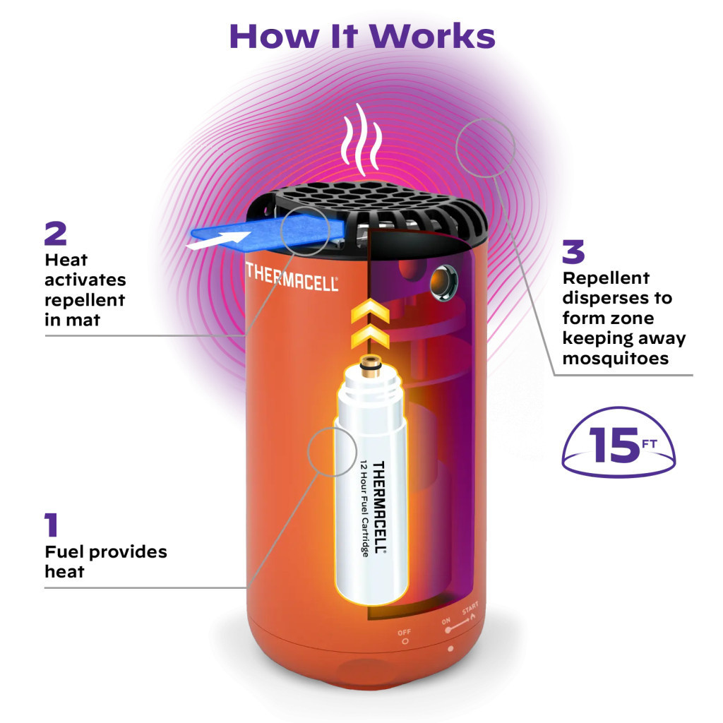- Battery life: 12 hours of protection (includes 1 butane cartridge and 3 active substance cartridges)