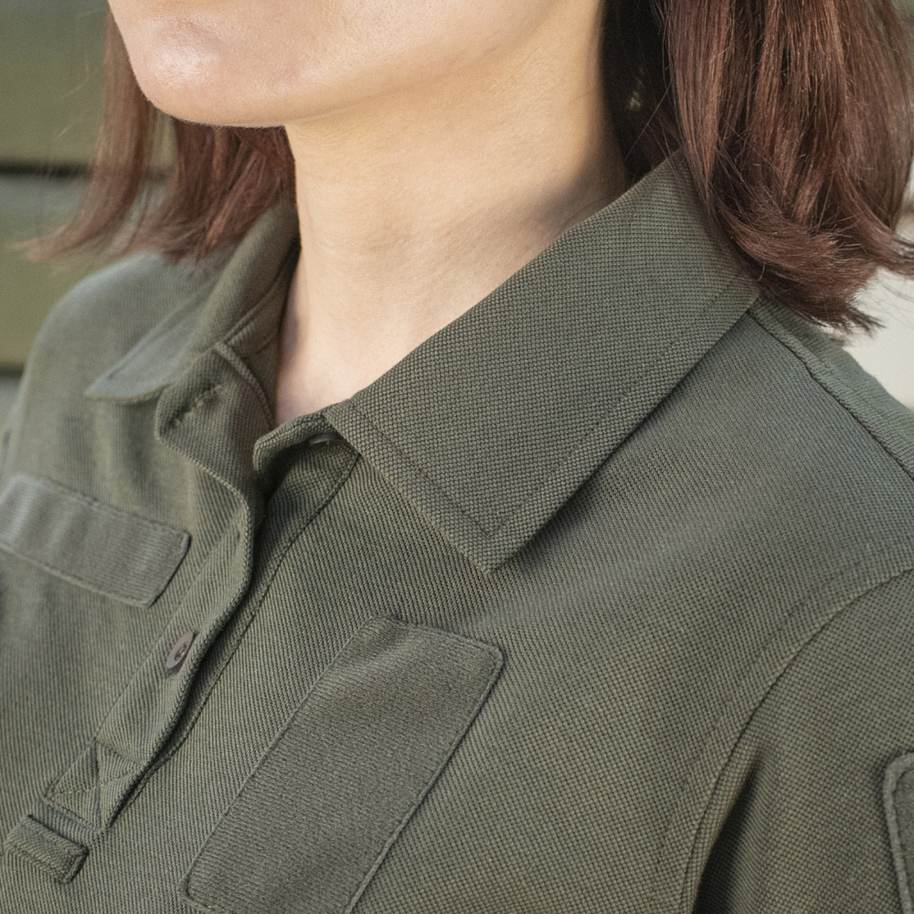 M-Tac Tactical Polo-Shirt 65/35 Lady is a classic service polo shirt made from a comfortable, hard-wearing fabric combining cotton and polyester. The cut is optimized for women: Velcro panels for applying badges and name tags, as well as a central loop for an official badge or glasses. This model is fully adapted for use in law enforcement structures.
