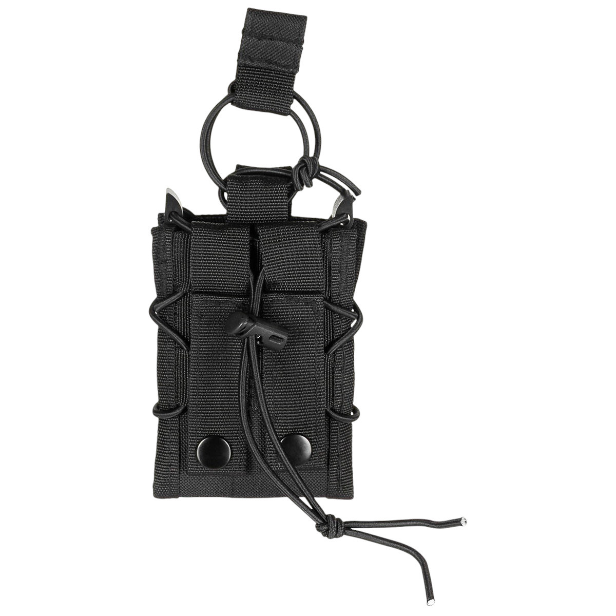 Elastic cord at the top with pull tab to secure the magazine