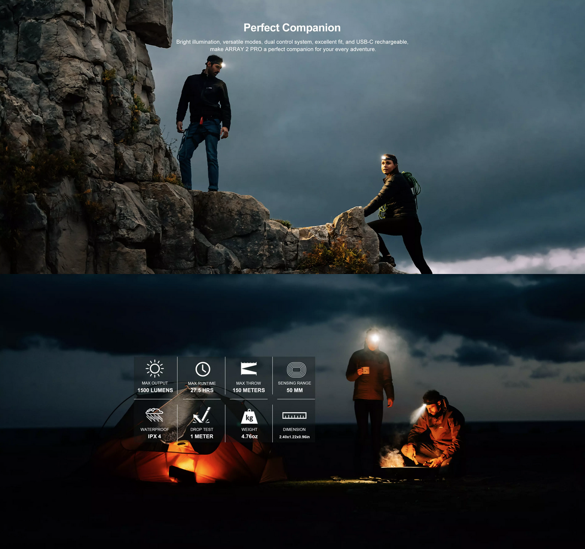 Higher Performance: A 3350mAh battery pack featuring USB Type-C charging delivers a max output of 1,500 lumens and 27.5 hours max runtime.