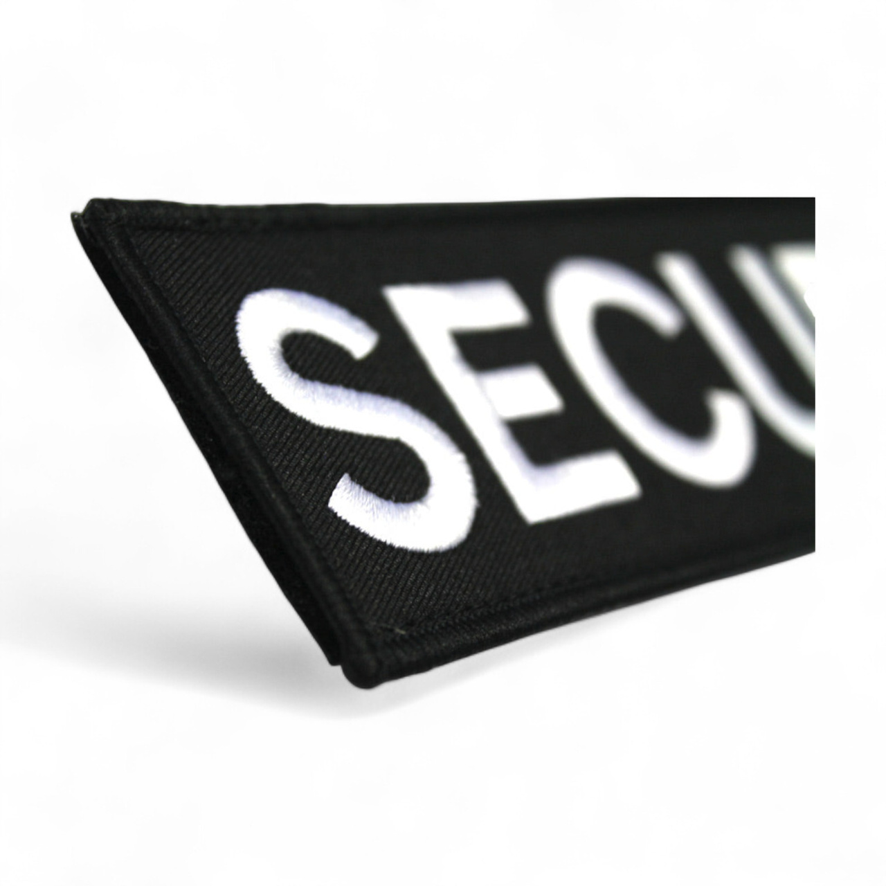 • Large Back Patch – Embroidered SECURITY – 25x10 cm – Black Background / White Text – Velcro Attachment (hook & loop)