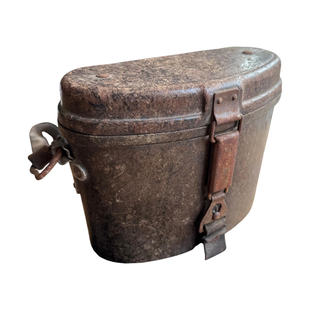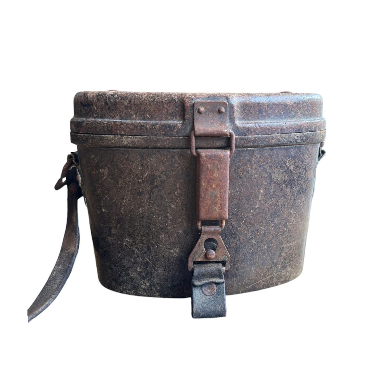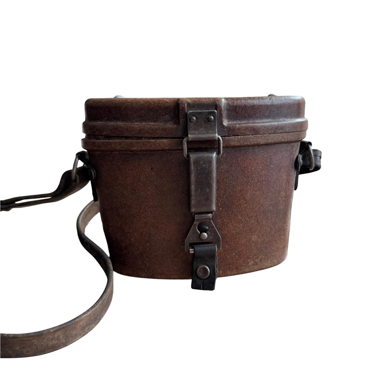 This military binocular case is made of Bakelite, the world’s first synthetic plastic, invented in 1907 by chemist Leo Baekeland. Thanks to its exceptional resistance to impact, heat, moisture, and wear, Bakelite was widely used in military applications between the 1930s and 1970s. It was the ideal choice for manufacturing binocular cases, optical components, gas mask containers, and other essential field gear. Today, these items are considered rare collector’s pieces, appreciated for both their historical and aesthetic value.