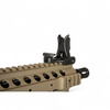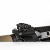 The replica’s receiver, free-float type front, SF-type retractable stock with battery compartment, and pistol grip are made of nylon fiber-reinforced polymer. The barrel, flash hider, enlarged charging handle, and external controls are made from aluminum alloy and ZnAl. All screws, pins, the ejection port cover, and the mock bolt are made of steel. The barrel is marked with a unique serial number.