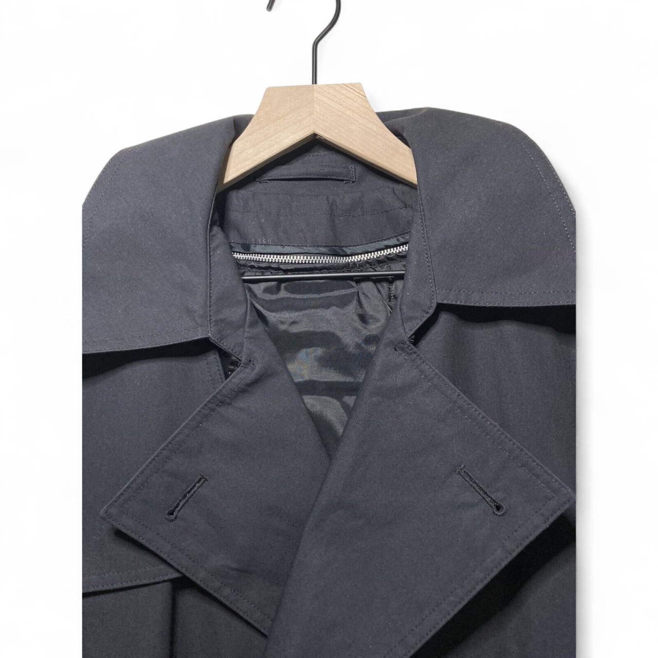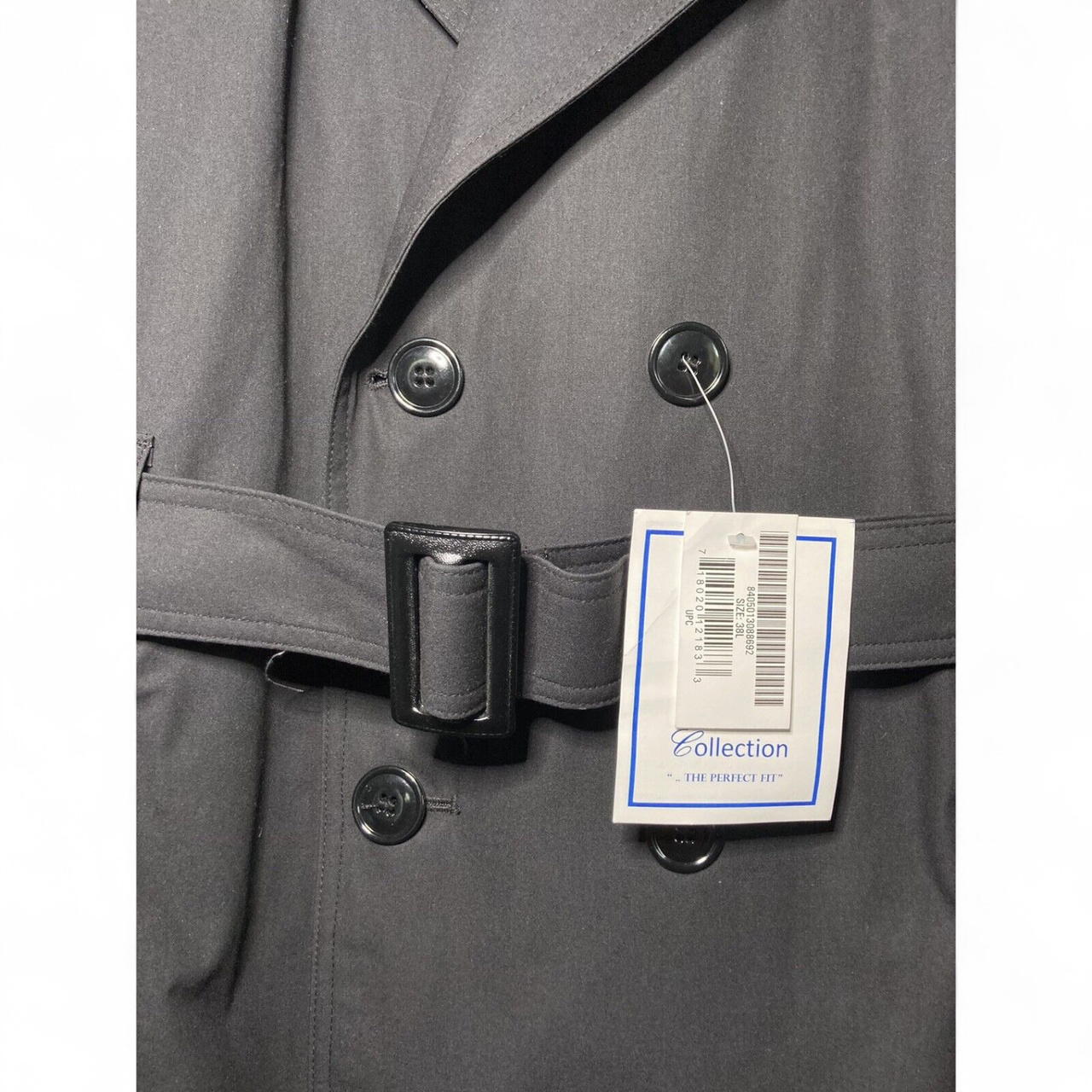 The Marine Corps All Weather Coat waterproof trench coat is pewter grey in colour, with two rows of buttons, a waist belt and a removable inner lining. The outer material is treated for water resistance, making it suitable for the cold seasons (winter, spring, autumn).