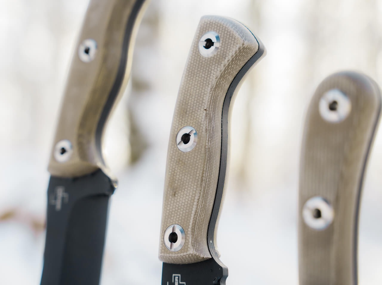 The solid blade, with its characteristic front-loaded profile, has two types of sharpening, making it ideal for cutting, splitting, scraping, digging, or using as a lever in survival situations. The optimal balance between blade thickness and length, together with the ergonomic shape of the handle scales made of finely textured Micarta, allow the knife to be used for long periods without fatigue.