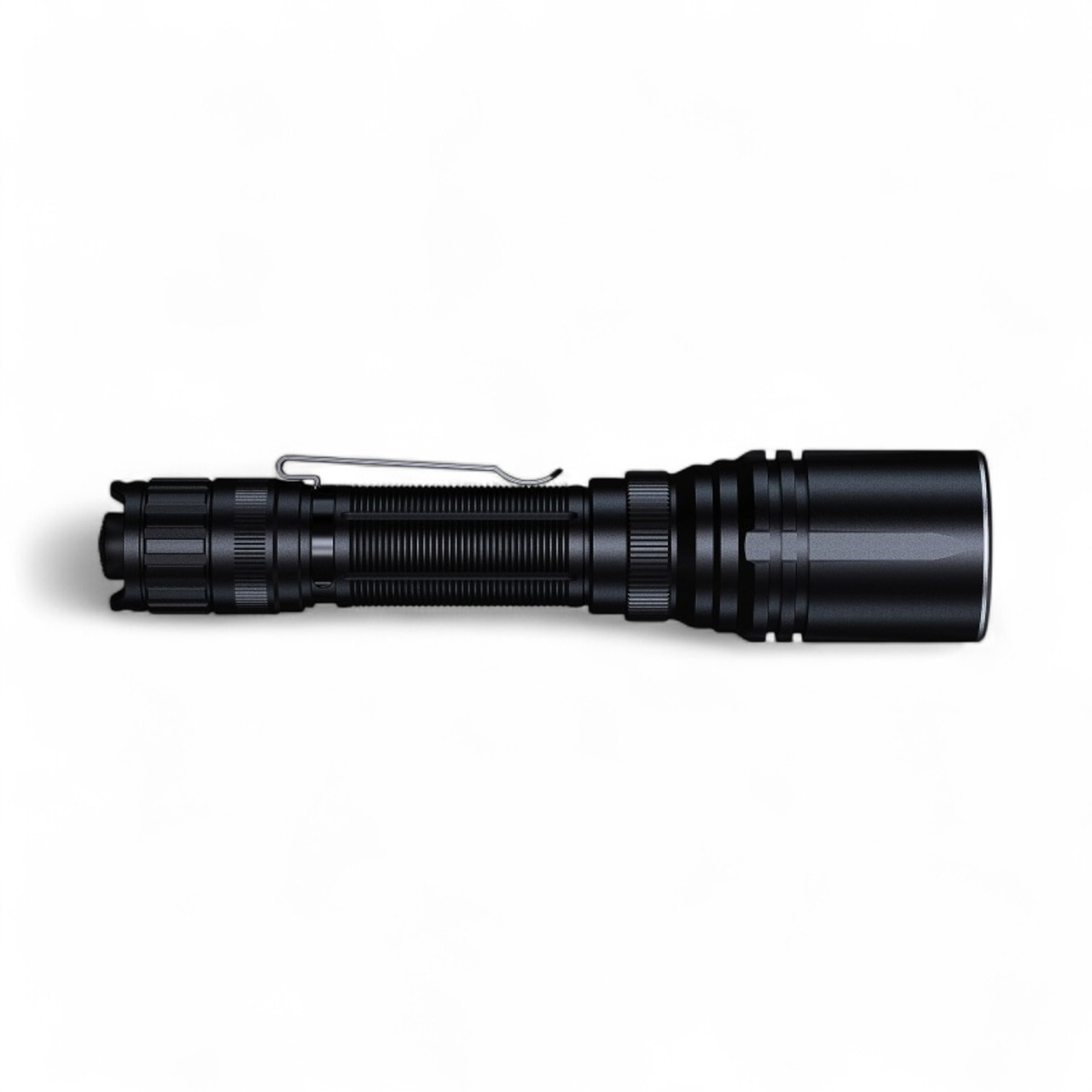 The body of the flashlight is made of hardened A6061-T6 aluminum with a HA-III hard anodized finish, resistant to scratches and abrasion. Weighing only 250 g and measuring 184 mm in length, the TK30R is easy to carry and mount on a weapon. The grooves and geometric profile ensure a firm grip and prevent rolling on inclined surfaces.