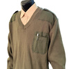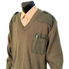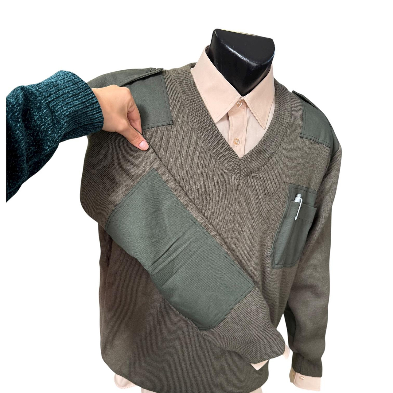 Romanian military sweater from the Romanian Army surplus, designed for city and service wear. The classic model, with a V-neck, shoulder epaulettes, and chest pocket, combines functionality with authentic military style.