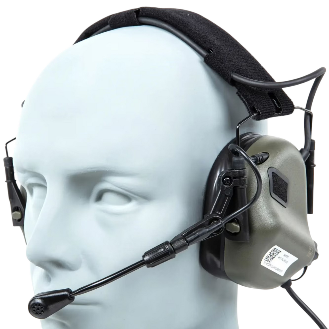 The headset comes with an adjustable communication microphone, allowing clear communication with others. The model is equipped with a NATO 7.0 connector for connecting to a PTT module or radio. The unit is powered by two AAA alkaline batteries.