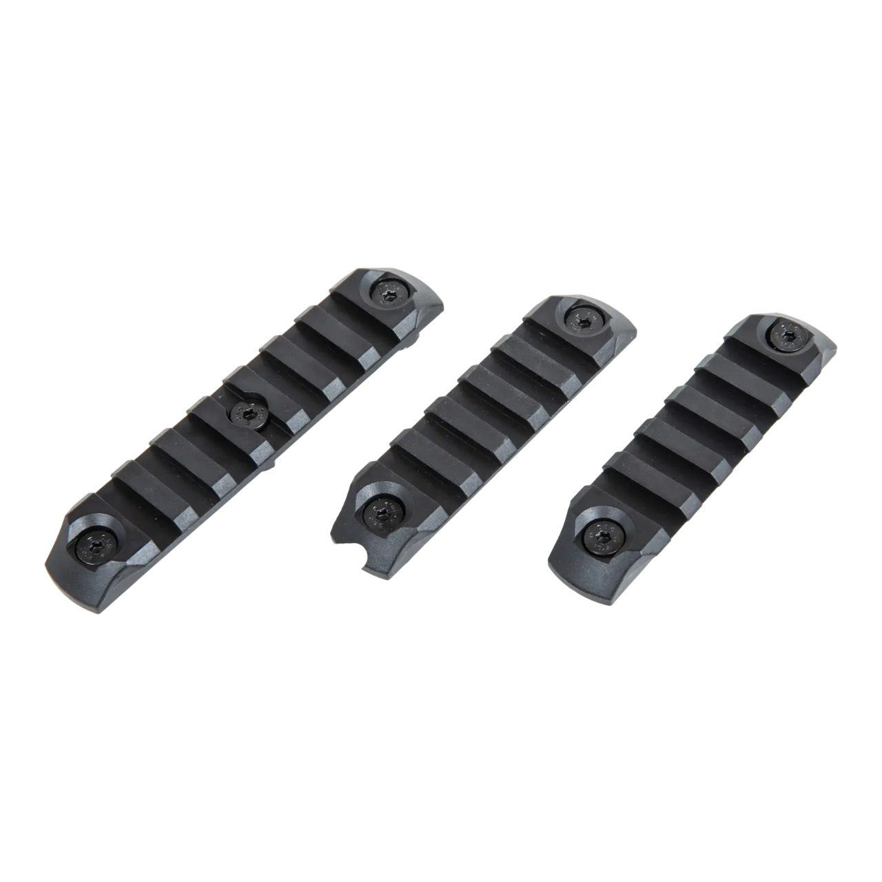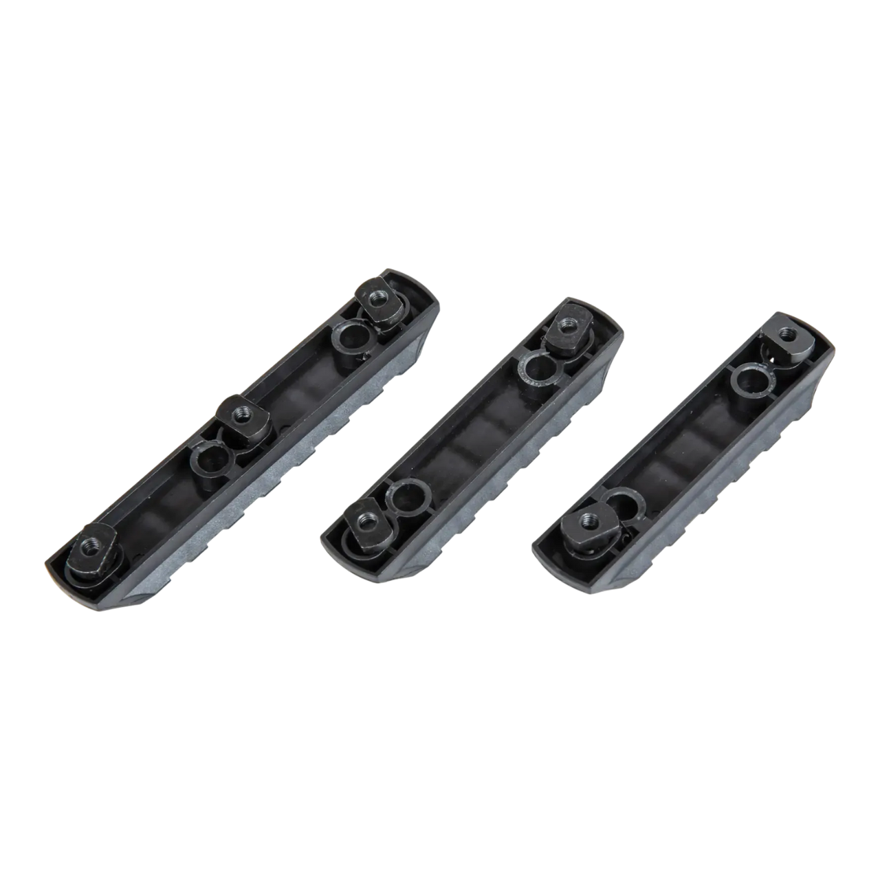 The set consists of three plastic RIS rails, 7.5 cm and 9.5 cm long, designed for mounting on M-LOK systems.